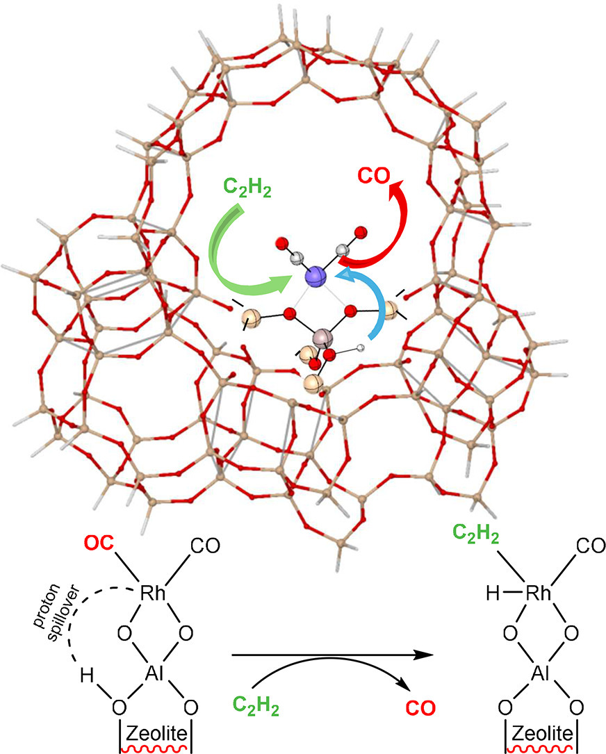 DFT studies for ligand modification and proton spillover zeolite supported Rh(CO)2 complex