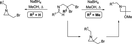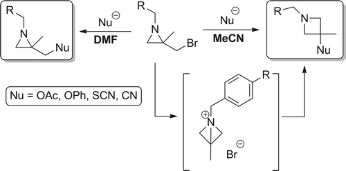 Solvent-Controlled Selective Transformation of 2-Bromomethyl-2-methylaziridines to Functionalized Aziridines and Azetidines