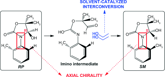 Solvent-Catalyzed Ring–Chain–Ring Tautomerization in Axially Chiral Compounds
