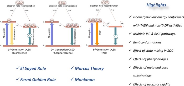 Computational descriptor analysis on excited state behaviours of a series of TADF and non-TADF compounds